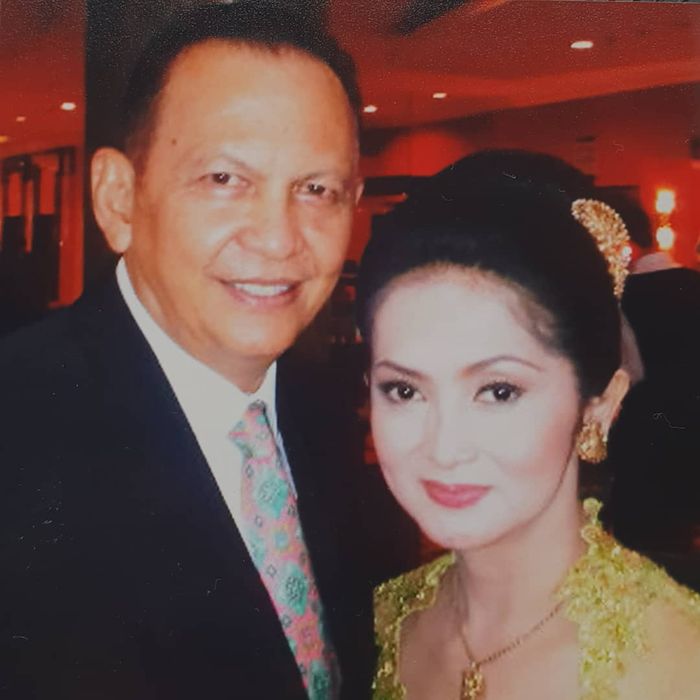 Sementara itu, Anna Maria, istri Roy Marten mengenakan kebaya hijau dan rambut disanggul yang dilengkapi dengan hiasan kepala berwarna emas.