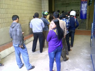 Di Bank Indonesia Banjarmasin dipenuhi antrean penukaran uang yang tampak didominasi para "penjual uang", Rabu (15/8/2012).