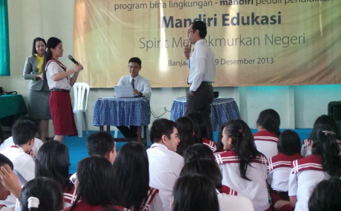 BANJARMASINPOST.CO.ID, BANJARMASIN - Sekitar 100 siswa dan siswi SMA Frater Don Bosco Banjarmasin mengikuti mandiri edukasi yang dilaksanakan Bank Mandiri Banjarmasin.