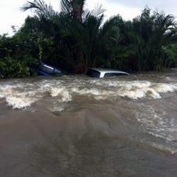 Mobil dan Sepeda Motor Terseret Banjir di Bangka