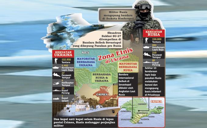 KIEV, BPOST - Kondisi politik di Ukraina makin memanas akibat invasi pasukan Rusia di ‘negara bagian’ Crimea. Perang membayang di depan mata karena pemerintahan sementara Ukraina menyatakan siap ‘mengusir’ Rusia dari negaranya.