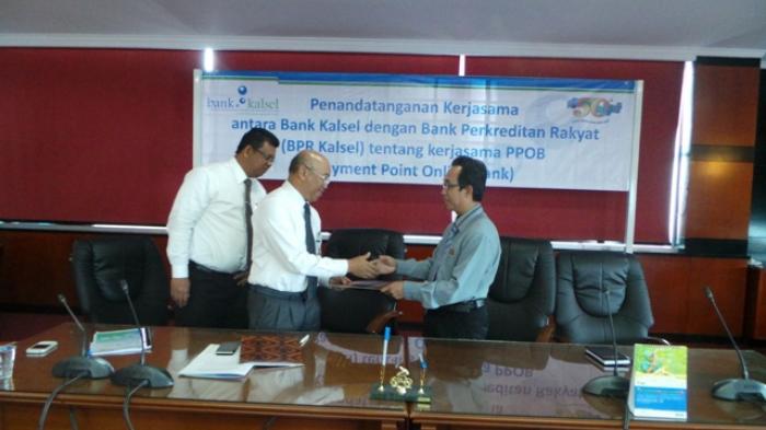 BANJARMASINPOST.CO.ID,BANJARMASIN - Bank Kalsel melakukan kerjasama dengan Bank Perkreditan Rakyat (BPR) Kalsel. Kerja sama ini dilakukan di bidang Payment Point Online Bank (PPOB). Penandatanganan kerja sama dilaksanakan di Kantor Pusat Bank Kalsel, Senin (2/6/2014) pagi.