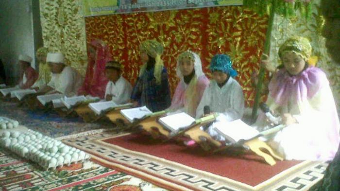 Sembilan santri dan santriawati dari TK/TPA Alquran LPPTKA, BKPRMI Unit 154 Nurul Ikhlas Banjarmasin melaksanakan khataman Alquran di Mesjid Nurul Ikhlas di Kompleks Gardu Mekar Indah, Minggu (7/9/2014) siang.