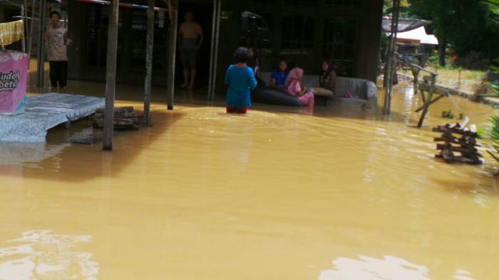 Sulaiman, warga desa Kurau mengaku banjir kali ini merendam rumahnya sejak, Kamis, dini hari.