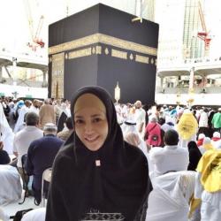 Setidaknya ada sepuluh foto dirinya berbalut hijab yang diambil ketika melaksanakan ibadah umrah beberapa waktu lalu. Salahsatunya ketika dia berfoto sendirian di depan Kabah.