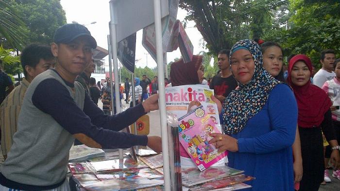 Baru sebentar dibuka sudah banyak warga yang datang dan memberi koran serta majalah yang di pajang di stand tersebut. Bukan hanya itu, warga juga disapa oleh kru BPost Radio yang menggelar siaran langsung (on air) di tempat tersebut.