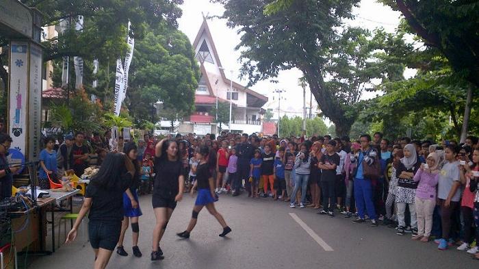 Antusias warga pun makin ramai. Mereka sambil menonton pertunjukan cover dance, juga warga membeli koran atau majalah yang di jual di stand tersebut.