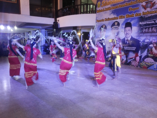BANJARMASINPOST.CO.ID, BANJARMASIN - Selain dihibur oleh tari nusantara, pembukaan Kalimantan Bike Week 2015 di Balaikota Banjarmasin, Jumatb (6/3/2015) juga dimeriahkan oleh tari Dayak Meratus.