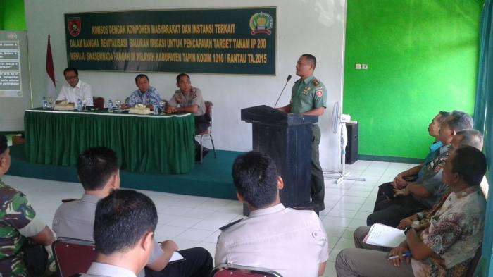 BANJARMASINPOST.CO.ID, RANTAU - Perwakilan petani se-Kabupaten Tapin diundang oleh Kodim Rantau Kabupaten Tapin untuk urun rembuk membicarakan saluran irigasi yang belum maksimal, Kamis (15/4/2015) di Makodim Rantau.
