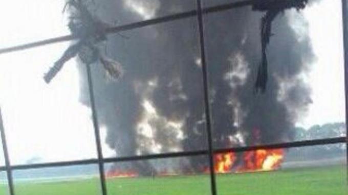 JAKARTA, BPOST - Benar-benar tragis. Satu pesawat tempur jenis F-16 milik TNI Angkatan Udara (AU) meledak lalu terbakar saat hendak take off di Lanud Halim Perdanakusuma, Jakarta, Kamis (16/4). Meski sang pilot, Letkol (Pnb) Firman Dwicahyo selamat, tetapi dia mengalami luka-luka akibat meloncat dari kokpit saat pesawat masih melaju.