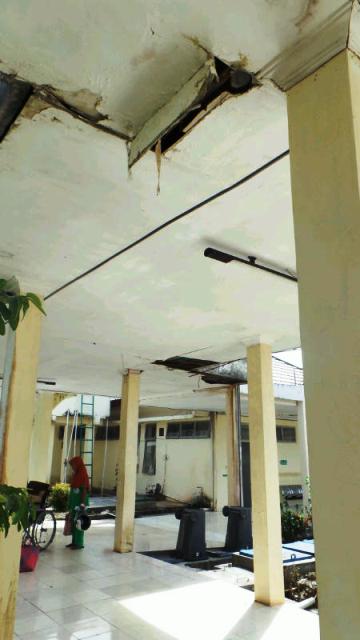Berdasarkan pantauan koran ini, kondisi plafon rusak kebanyakan diluar ruangan inap pasien, seperti didekat moshalla, kemudian lorong masuk menuju rawat inap.