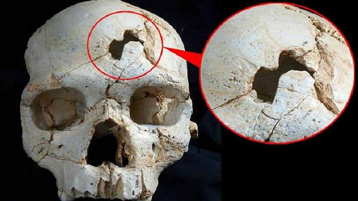 "Tengkorak ini menunjukkan dua lubang menembus pada tulang frontal, di atas mata kiri,” ujar Dr nohemi Sala, yang memimpin penggalian.