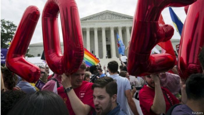 Putusan -yang diambil dengan perbandingan suara lima setuju berbanding empat menolak ini- berarti penikahan sejenis akan sah secara hukum secara