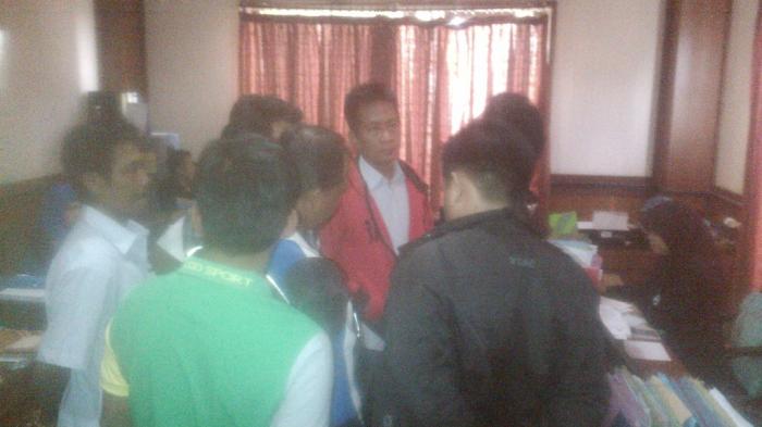 para karyawan PT MGL saat mendatangi kepala HRD Wisma Energi Group untuk mempertanyakan hak mereka.