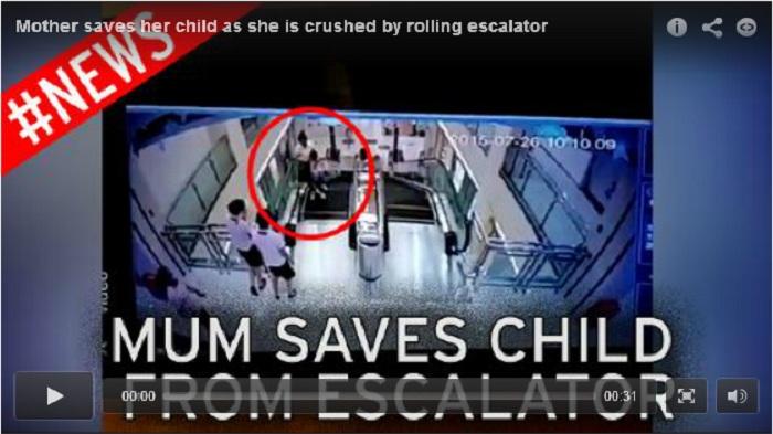 Seperti di rilis Mirror, Senin (27/7/2015), Video tersebut menunjukkan sang ibu dan anaknya berhasil mencapai puncak eskalator, sebelum lantai di depan mereka runtuh.