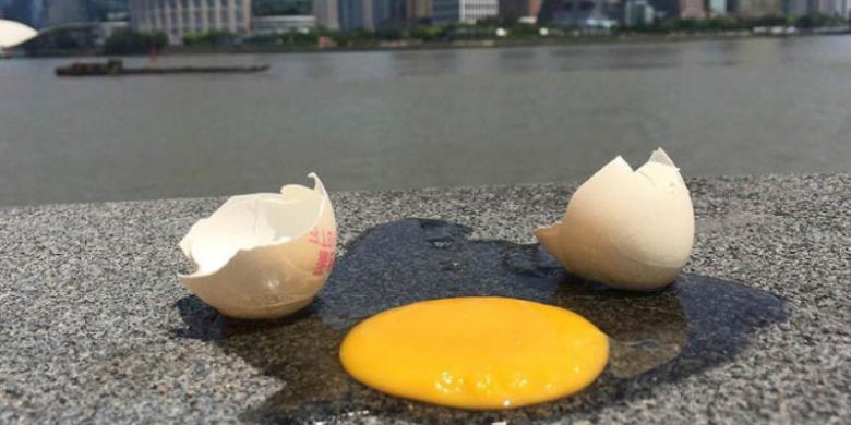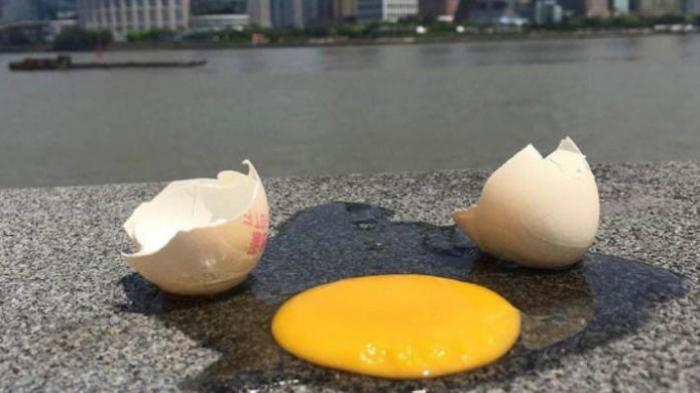 Untuk membuktikan betapa panasnya kota Shanghai, sejumlah jurnalis melakukan sebuah percobaan menarik. Mereka mencoba memasak telur di trotoar beton tepat pada tengah hari.
