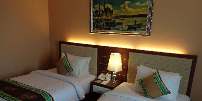 KOMPAS.COM/I MADE ASDHIANA - Kamar tipe Deluxe Hotel Q Grand Dafam Syariah Banjarbaru di Kalimantan Selatan.