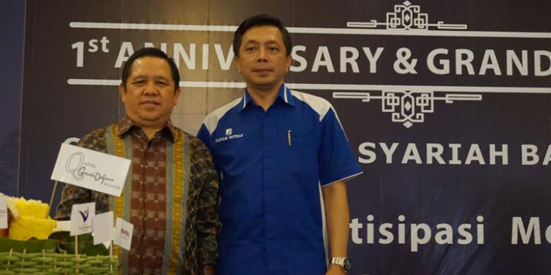 KOMPAS.COM/I MADE ASDHIANA - H Norhin (kiri), pemilik Hotel Q Grand Dafam Syariah Banjarbaru bersama Andhy Irawan (kanan), Managing Director Dafam Hotel Management dalam grand opening Hotel Q Grand Dafam Syariah Banjarbaru di Banjarbaru, Kalimantan Selatan, Kamis (13/8/2015).
