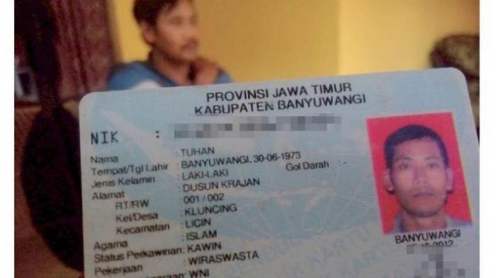 Seorang lelaki asal Kecamatan Licin, Kabupaten Banyuwangi, yang diketahui bernama Tuhan, menimbulkan polemik
