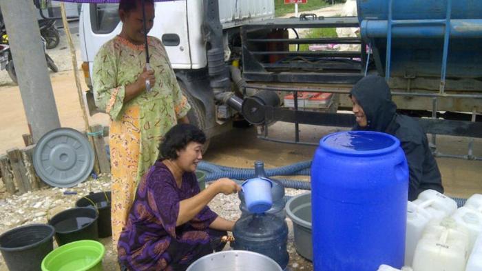 "Syukurlah, hari ini PDAM mengirim air untuk dibagikan kepada warga," ujarnya, sambil membawa galon dan panci memasak untuk menampung air.