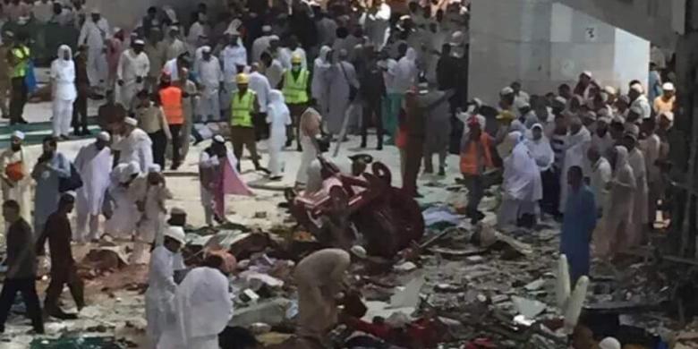 Seperti diberitakan, alat berat proyek (crane) di Masjidil Haram, Mekkah, Jumat, ambruk sekitar pukul 17.30. Pada saat itu, angin kencang dan hujan deras mengguyur Mekkah.