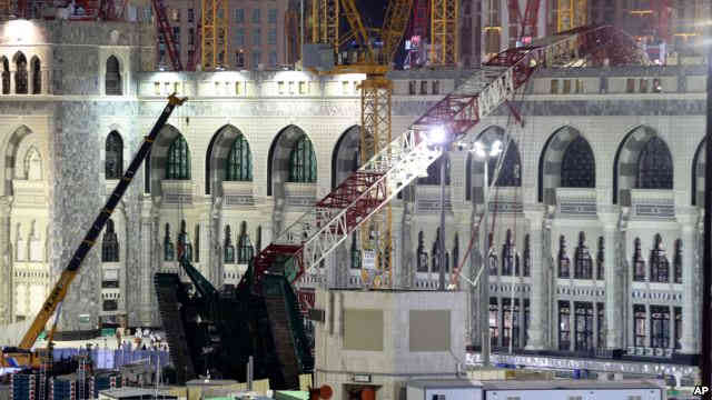 Pertahanan Sipil Kerajaan mengatakan angin yang tidak biasanya kuat menghantam salah satu tiang derek besar di sekitar Masjidil Haram. Tiang derek itu roboh menembus atap dan lantai atas masjid, membuat lempengan-lempengan baja ambruk.