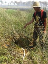 Bekantan itu tergeletak di areal persawahan. Di lihat dari fisiknya, ukuran Bekantan itu termasuk dewasa. Bpost mencoba mengukur ekornya sekitar 60 sentimeter.