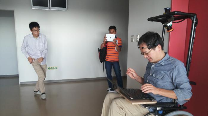 "Tidak usah digerakkan rodanya, cukup alat yang di pasang kepala kita akan menjalankan sendiri kemana arah pikiran kita mau. Ini namanya teknologi Brain Computer Interface (BCI). Alat ini menangkap sinyal elektroda dari pikiran Anda sehingga komputer bisa membacanya," kata professor Minoru Nakazawa sang perancang alat. (Huda)