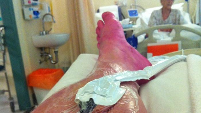 Setelah beberapa jam berada di rumah sakit, kaki Melissa sangat bengkak dan merah. Kakinya membengkak hingga dua kali ukuran normal dan menurut hasil tes, tekanan di kakinya mencapai 125, lebih dari tiga kali lipat ukuran tekanan yang normal.