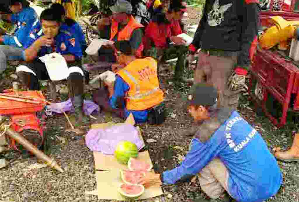 Hampir semua anggota lahap menikmati makanan yang sudah disediakan. Menu yang disediakan panitia setiap hari selalu diselinggi buah, seperti semangka maupun pisang.