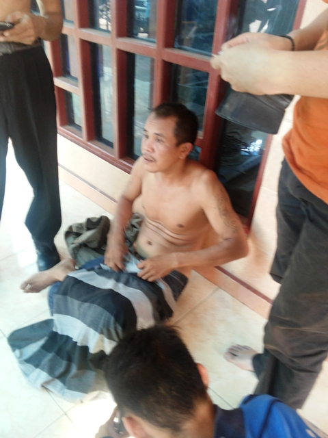 BANJARMASINPOST.CO.ID, BANJARMASIN - Satu dari dua kawanan maling, Aim Gani (46), warga Jalan Manggis, babak belur, setelah tertangkap tangan mencoba mencuri Hp dari dalam mobil pikap di halaman langgar Al-Kautsar, Kompleks Banjar Indah Permai, Pemurus Dalam, Banjarmasin Selatan, Rabu (28/10) siang.