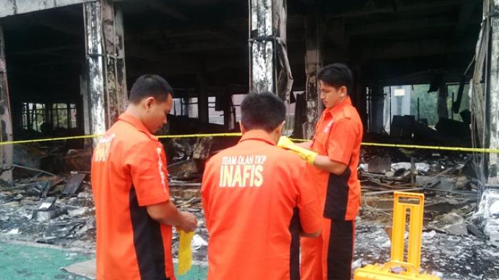 BANJARMASINPOST.CO.ID, PALANGKARAYA- Lokasi kebakaran Kantor Gubernur Kalimantan Tengah Jalan RTA Milono Palangkaraya, Senin (2/11/2015) didatangi sejumlah petugas kepolisian dari Tim olah TKP Insfis, Reskrim Polresta Palangkaraya, dan Puslabfor Polri Surabaya yakni.