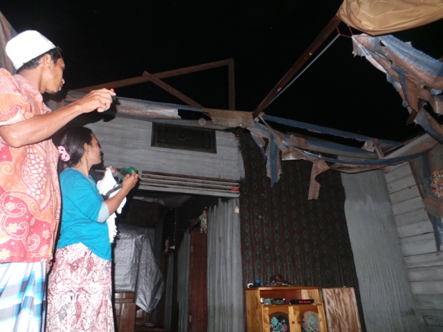 " Pada saat kejadian sendiri saya sempat lari lewat belakang rumah. Namun setelah berada di halaman, tiba-tiba atap rumah sudah saya temui tidak ada lagi," jelasnya kepada koran ini.
