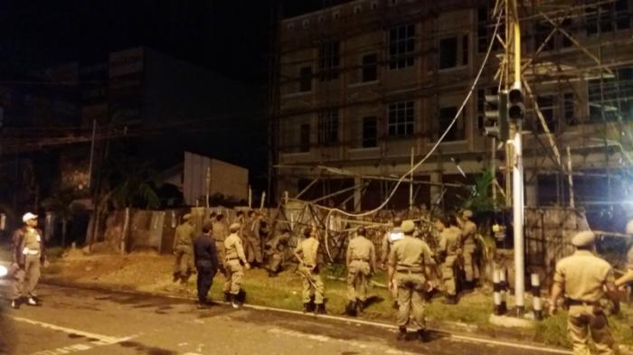 Puluhan anggota Satpol PP tiba di lokasi tersebut sekitar pukul 03.00 wita, setelah sebelumnya melakukan pembongkaran reklame penunggak pajak di kawasan Jafri Zam-zam.