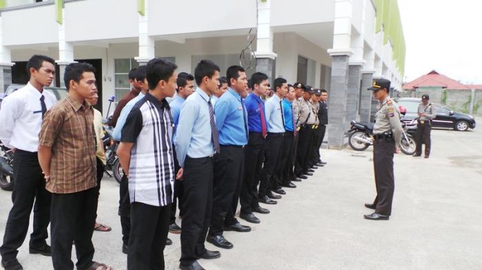 KAPOLSEK Kertak Hanyar, AKP Sakun Ariesandi, memberi pengarahan kepada puluhan santri Darul Hijrah dan anggota polisi mengamankan perayaan natal, Jumat (25/121/5) siang, di kawasan Kompleks Persada Mas, di Jl A Yani Km 8.
