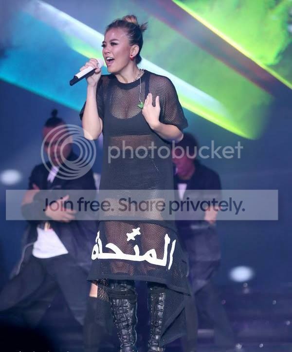 Melalui akun twitter Agnes Monica Fanbase, KTZ memberikan jawaban arti dari tulisan Arab yang dikenakan Agnes adalah united atau persatuan.