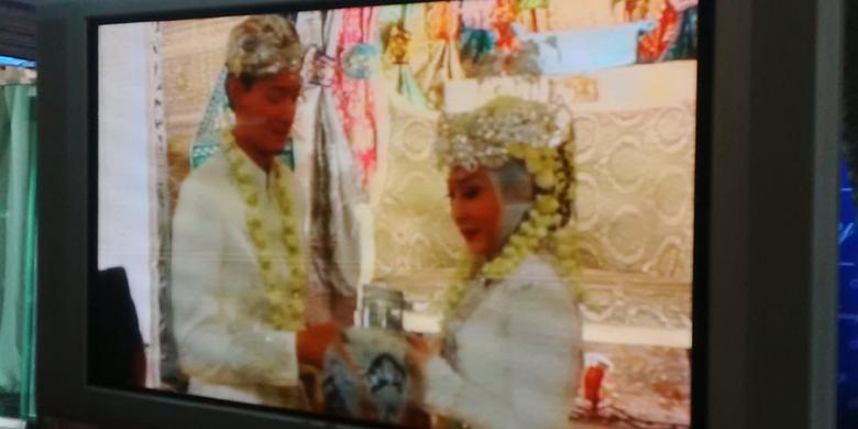 Setelah itu Fedi dan Vanny yang mengenakan busana putih secara bergantian diantar ke meja akad nikah.
