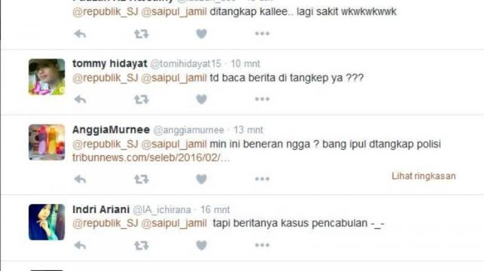 AnggiaMurnee membalas "@republik_SJ @saipul_jamil min ini beneran ngga ? bang ipul dtangkap polisi http://www.tribunnews.com/seleb/2016/02/18/artis-sj-yang-diduga-pedangdut-ditangkap-polisi-gara-gara-cabuli-anak-di-bawah-umur …"