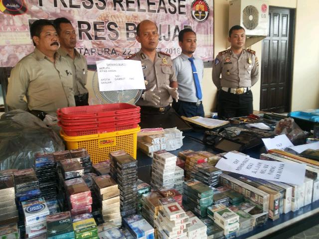 Dari tangan kedua pelaku Junaidi dan Riadi, polisi menyita belasan pak rokok, mi, susu, roti, minyak harum, kipas angin, televisi, ponsel, genset serta peralatan yang digunakan tersangka dalam beraksi di antaranya obeng, linggis, tukul termasuk mobil Pickap Grand Max putih milik Junadi. (wid)