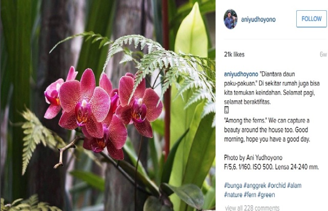 Dia kerap mengunggah foto-foto hasil jepretannya di akun instagramnya @aniyudhoyono.