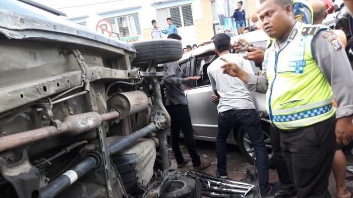 Telah terjadi kecelakaan beruntun di depan Rapak Plaza, Balikpapan.