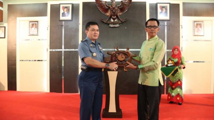 Sekda Tanah Laut Drs H. Abdullah MM menyambut rombongan siswa sekolah angkatan laut itu di Balairung Tuntung Pandang Pelaihari, Jumat (13/5/3016).