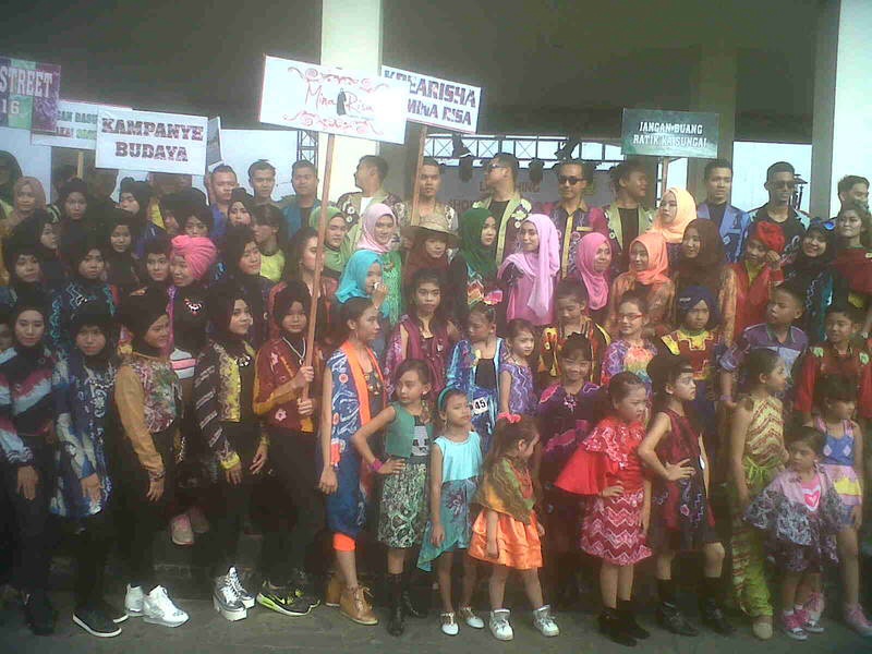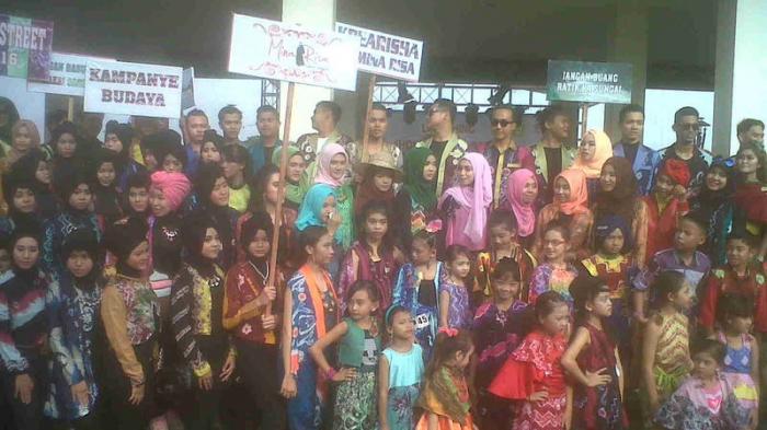 Sekitar 140 model cilik anak-anak, remaja hingga dewasa yang ada di Kalsel melakukan fashion show street baju Sasirangan menyusuri jalan di sepanjang