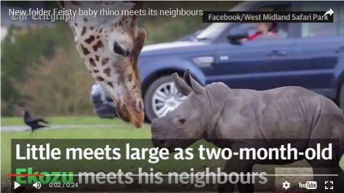 Tingkah Anak Badak Saat Bertemu Seekor Jerapah