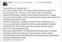 Ucapan selamat pun berdatangan dari banyak pihak. Salah satunya di media sosial Facebook yang secara terbuka menyatakan harapan baru bagi Kalteng bagi
