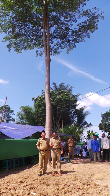Usai peletakan batu pertama pambangunan Masjid Al-Munaa Desa Timbaan Kecamatan Tapin selatan, bupati dan wakil bupati HM Arifin Arpan dan Sufian Noor mendatangi dan memeriksa pohon pulantan yang langka tersebut.