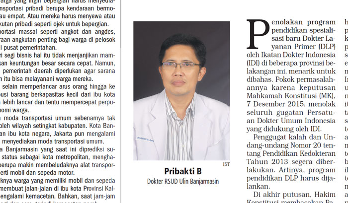 Penolakan program pendidikan spesialisasi baru Dokter Layanan Primer (DLP) oleh Ikatan Dokter Indonesia (IDI) di beberapa provinsi belakangan ini, menarik untuk dibahas. Pokok permasalahannya karena keputusan Mahkamah Konstitusi (MK), 7 Desember 2015, menolak seluruh gugatan Persatuan Dokter Umum Indonesia yang didukung oleh IDI.