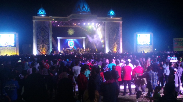 BANJARMASINPOST.CO.ID, KUALAKAPUAS - Penampilan Band Wali pada penutupan Festival Seni Qasidah (FSQ) V Tingkat Provinsi Kalteng yang dilaksanakan di Lapangan Olahraga Panunjung Tarung, Kota Kualakapuas Kalteng pada , Rabu (26/10/2016) malam, membuat ribuan penonton tak beranjak dari tempatnya.