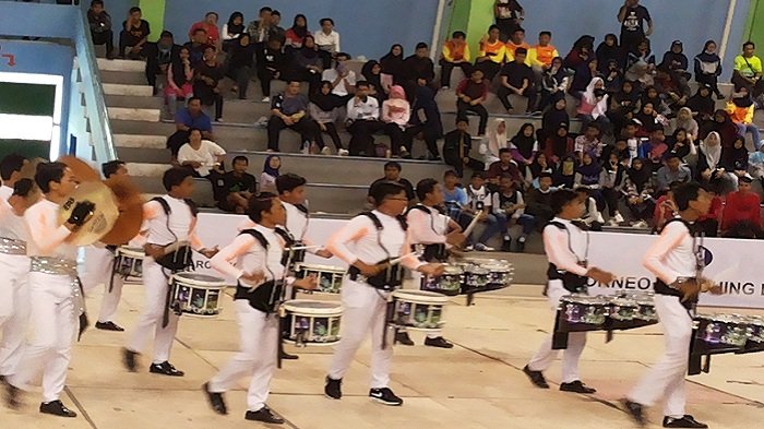 Penampilan Marching Band Unity Drumline Balikpapan saat berhadapan dengan MB Gita Bahana Multikarya SMKN 5 Banjamasin.