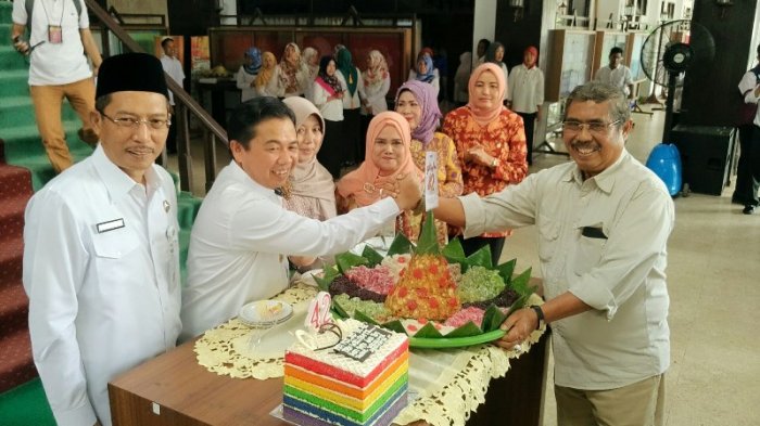 Tanpa pemberitahuan sebelumnya, Rusdi dan rombongan Banjarmasin Post memberikan tumpeng kepada Ibnu Sina.